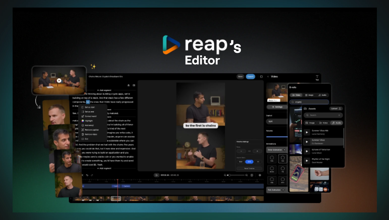 If you’re ready to scale short-form output without juggling multiple tools, try Reap an online editor built for turning one long video into weeks of Shorts, Reels, and TikToks.