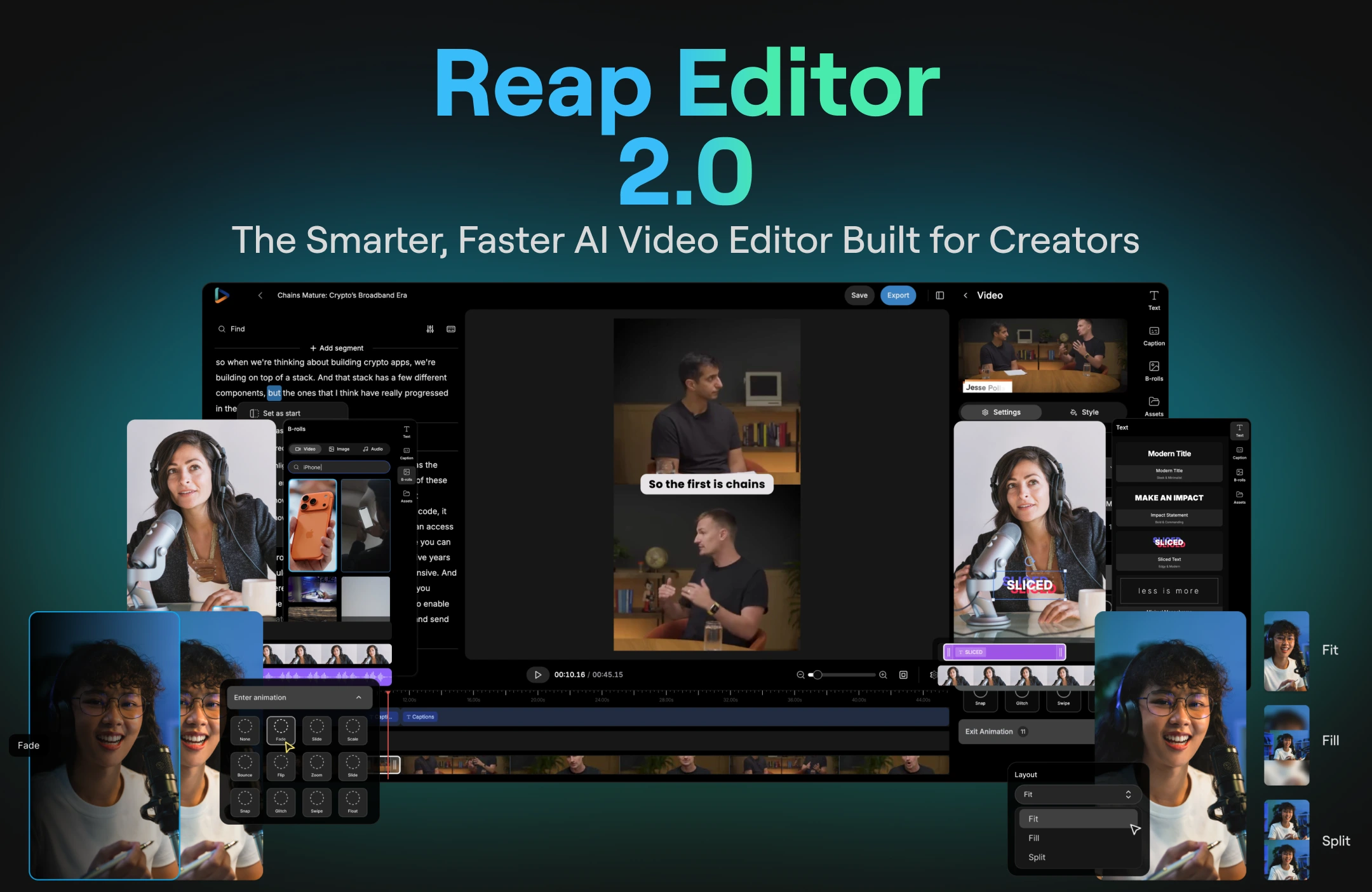 Reap Editor 2.0 isn’t just an update, it’s a creative upgrade that unlocks new levels of freedom. These new tools transform your clips from quick edits into branded, story-driven content ready for any platform.