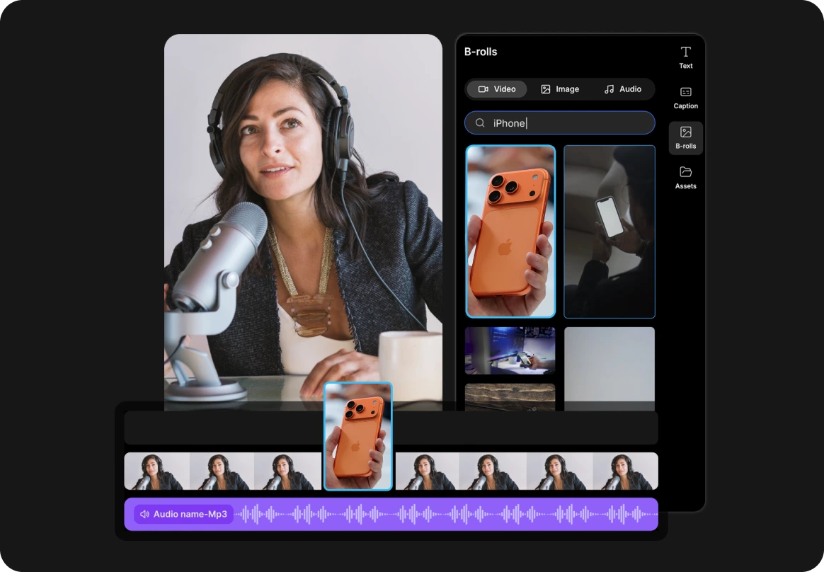 You can overlay B-roll to illustrate ideas, insert reaction shots, or add background music for tone and rhythm.