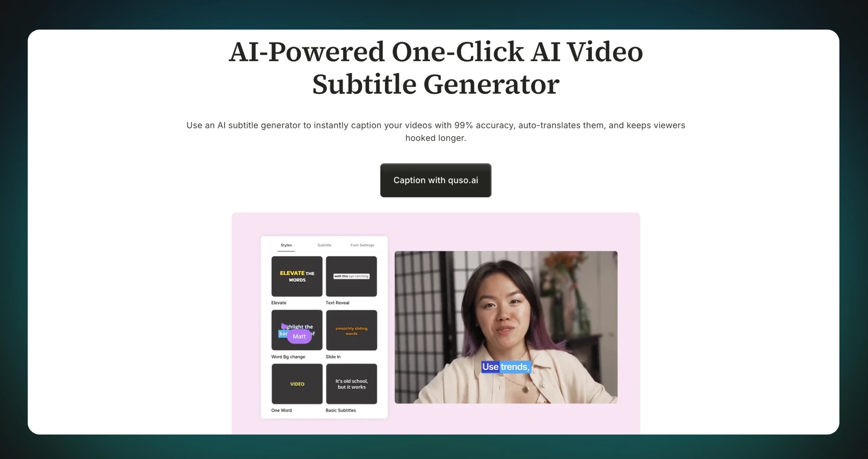 Quso keeps the process simple and uncluttered, which can be appealing for creators who prefer not to work inside a full video editor and just want captions generated quickly.