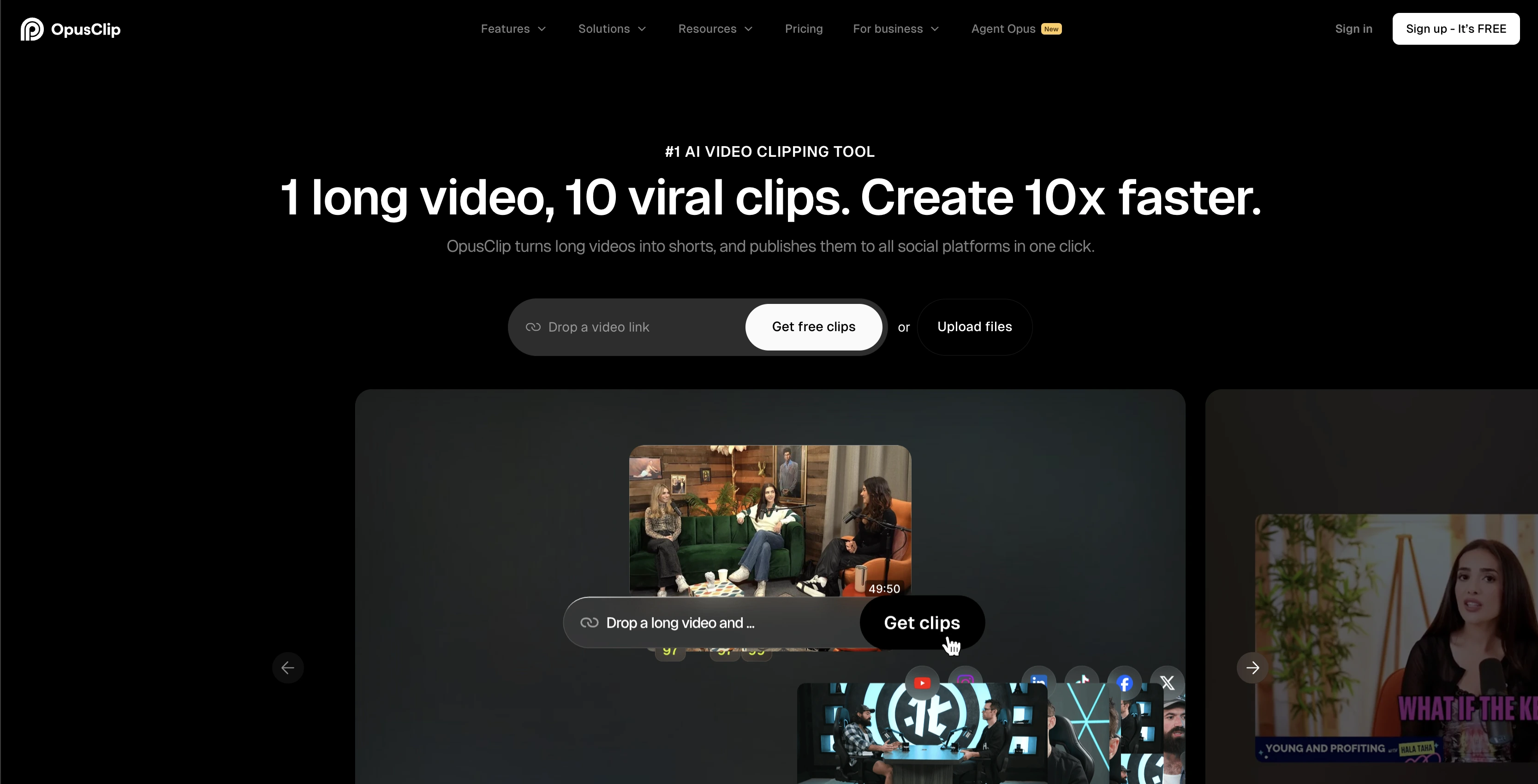 OpusClip remains one of the best-known AI clippers for quickly extracting “viral-style” moments from long videos. It’s fast, clean, and works well for creators who want quick output with minimal editing overhead.
