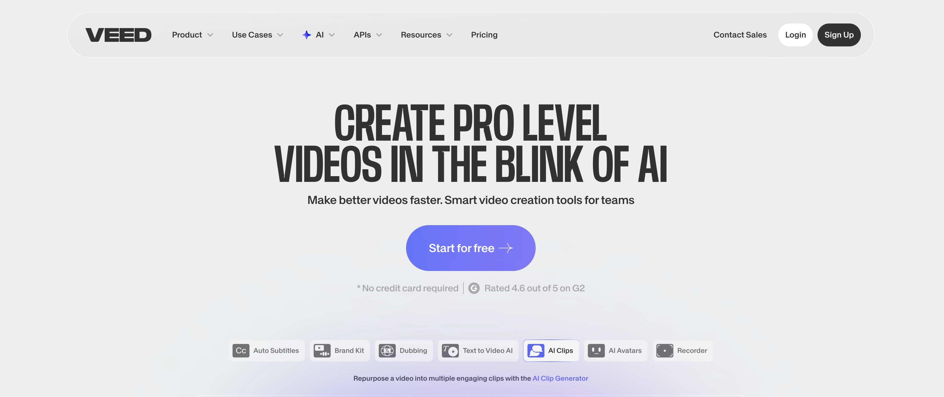VEED is broader than a clipper, it’s a general-purpose online editor with AI features. For teams that want one tool for many video tasks (not only clipping), VEED can be a flexible option.